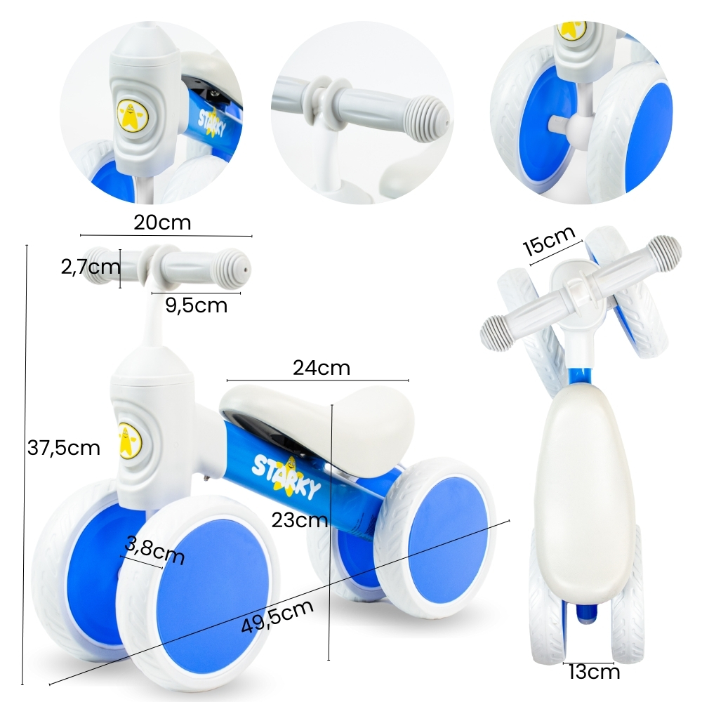 shumee Modro poganjalno kolo s 4 kolesi, 7", stabilno darilo za prvi rojstni dan