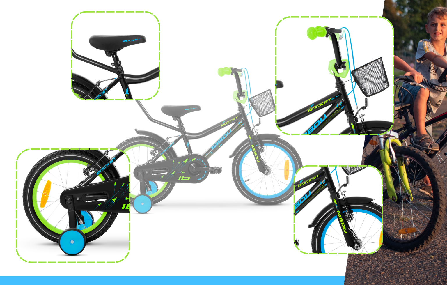 ➡️ ROCKET je model, ki je na voljo v velikostih koles: 12/14/16/18/20", kar omogoča izbiro pravega kolesa za otroke, stare od 2 do 8 let.