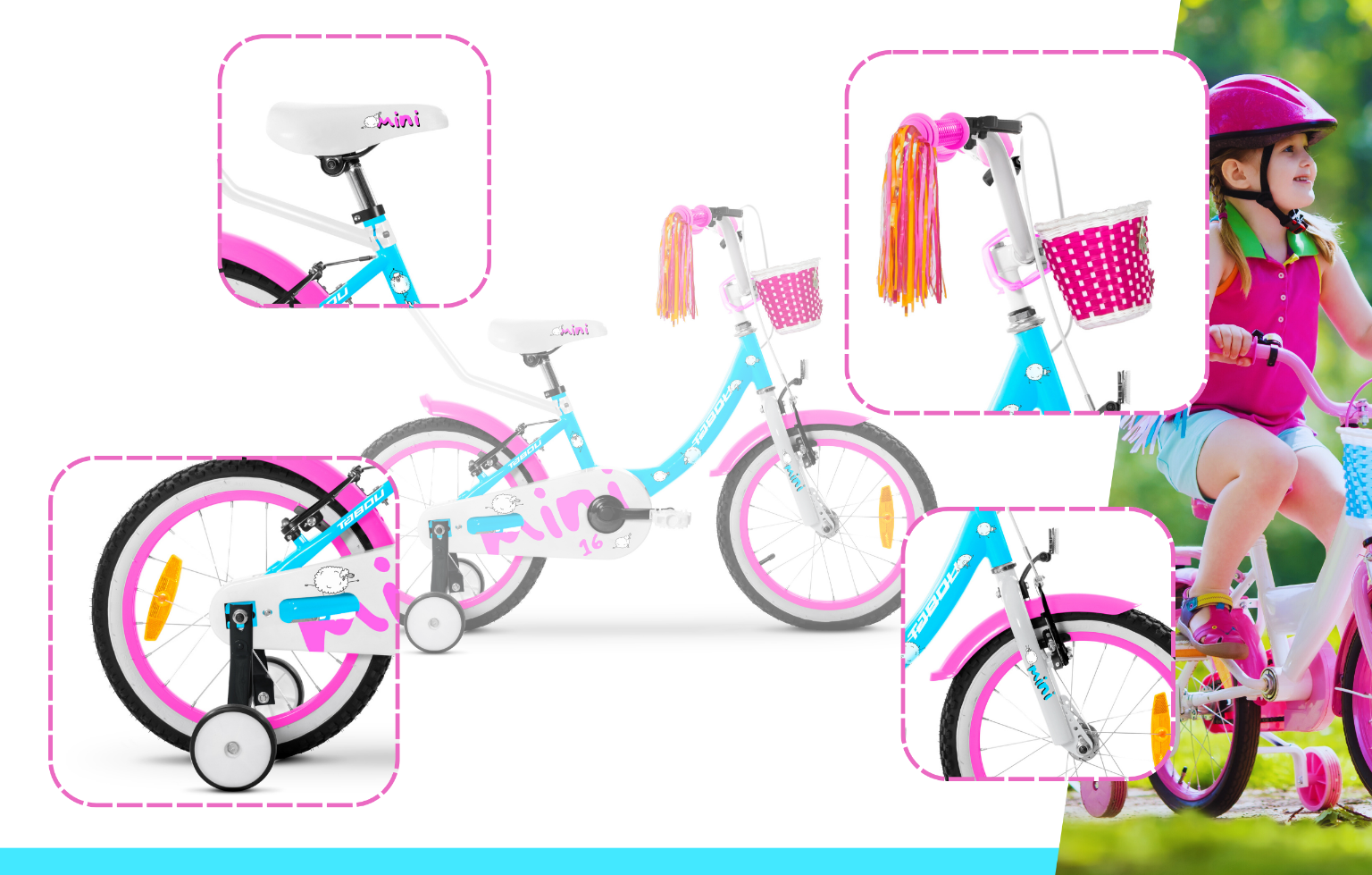 ➡️ MINI je kolo za deklice, ki se učijo samostojne vožnje.