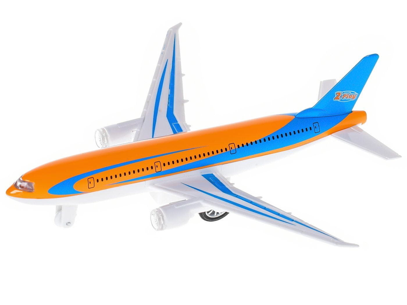 Ta igrača ne sme manjkati v zbirki letal vsakega malega pilota. Uživajte v letu in se prelevite v pilota transportnega letala iz zbirke 2-Play. Kovinsko letalo s premerom 18,5 cm je obojestransko. Opremljeno je s svetlobo in zvokom. Na voljo so 3 barve – modra, rdeča in rumena. Primerno za otroke od 3. leta starosti.