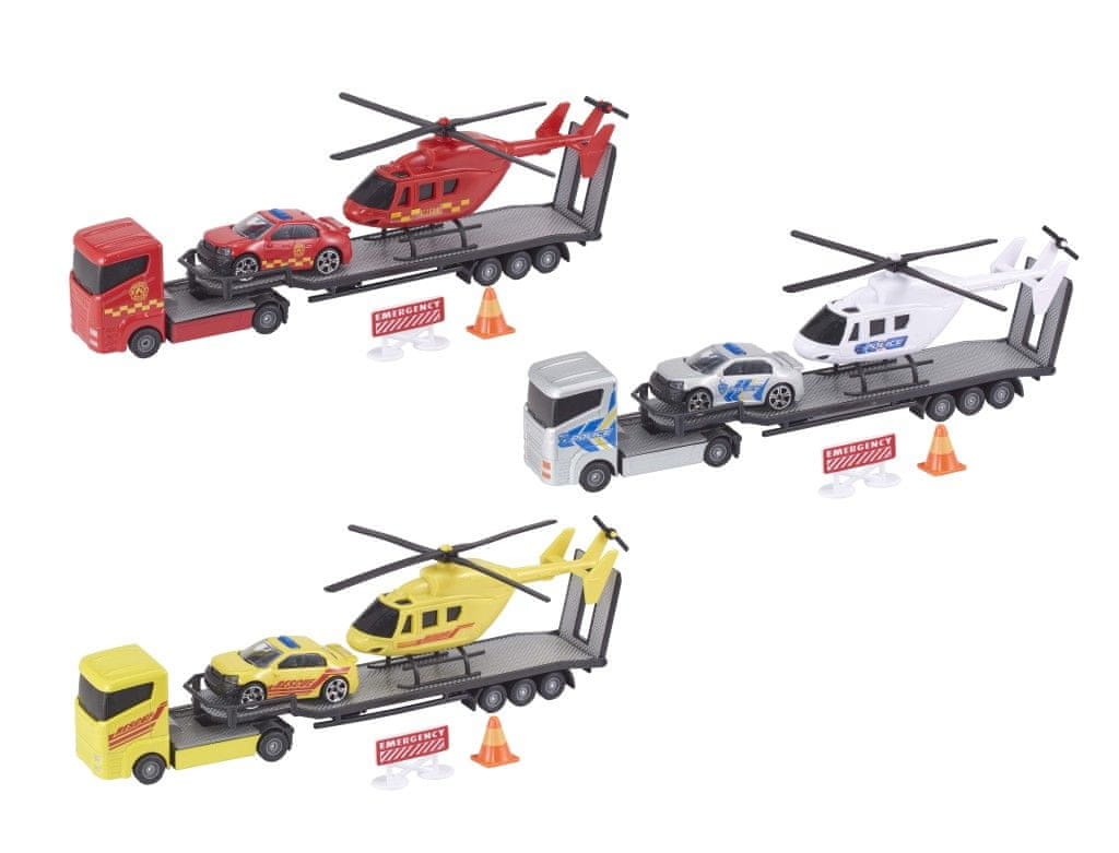 Traktor, ki prevaža avtomobil in helikopter. Na voljo v treh različnih različicah. Primeren za otroke od 3. leta starosti.