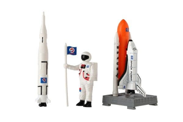 Teddies Prostorski komplet 6 kosov kovinski/plastenski astronavt, raketoplan z dodatki