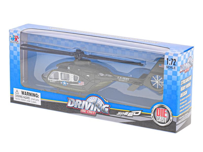 Helikopter 21 cm kovinski 1:72 – mešanica barv (rumena, rdeča, črna) Celoten opis