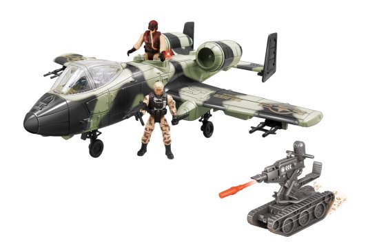 Letalo s figurami in učinki. Vozilo strelja s kroglami in mrežo. Velikost letala 48 cm, vojaki 10 cm. Gumbi za svetlobne in zvočne učinke na trupu pred motorji letala. 2×AA baterije za letalo niso priložene. Vsebina – letalo, vozilo, strelivo, orožje, 2 figuri vojaka. Slikovna navodila za uporabo na zadnji strani embalaže.