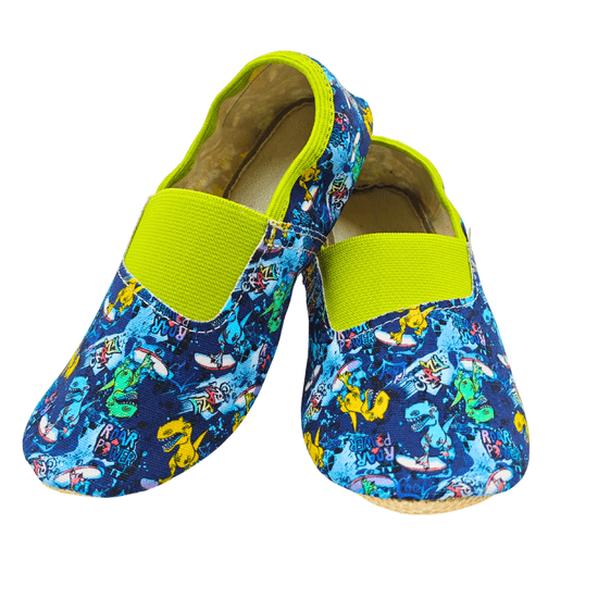 Široka elastika nad nartom poskrbi, da copat lepo stoji na nogi in se ne sezuva, hkrati pa ne pritiska. Otrok jih lahko sam obuje in sezuje – kar pomeni več samostojnosti in manj jutranjega hitenja.