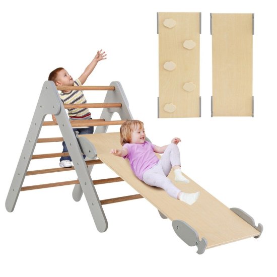 Northix Plezalni trikotnik s toboganom, plezalni okvir, lesena klančina, siva