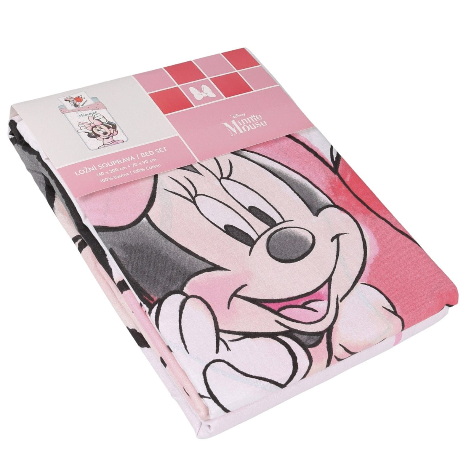 Disney DISNEY Minnie Mouse Belo-roza DVOJNA otroška posteljnina z zadrgo, 100% BOMBAŽ 140x200+70x90 cm OEKO-TEX