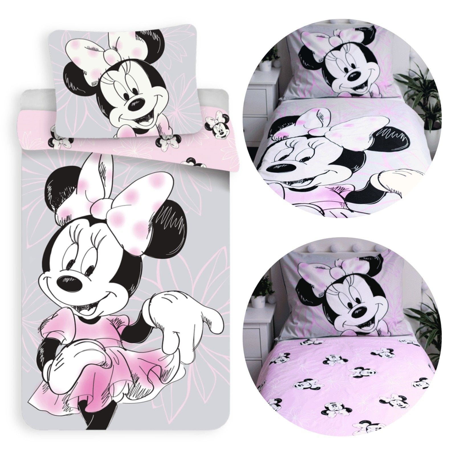 Disney DISNEY Minnie Mouse DVOJNA STRAN, bombažna otroška posteljnina z zadrgo, 100% BOMBAŽ 140x200+70x90 cm OEKO-TEX