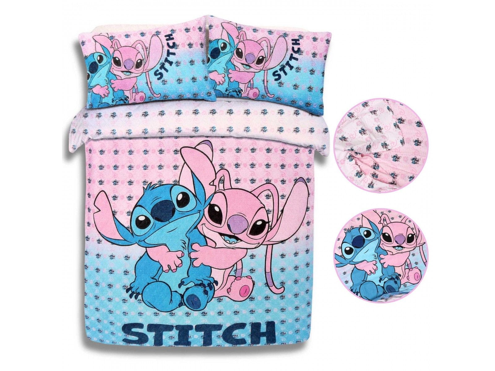 Modra posteljnina v velikosti 200 × 200 cm z očarljivim motivom Stitcha in Angela bo zagotovo všeč oboževalcem priljubljenega filma.