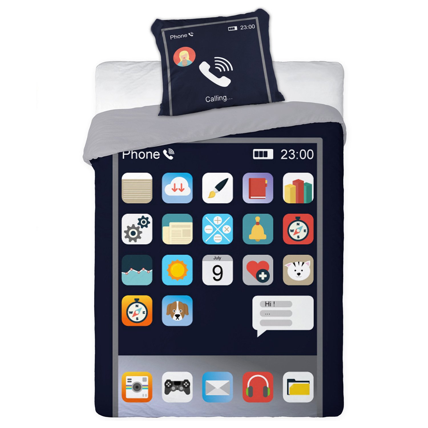 Otroška posteljnina Telefon je izdelana iz naravnega, kakovostnega 100% bombaža, zato je na otip zelo prijetna, nežna in mehka. Bombaž je antialergen ter prijazen do kože. Omogočil bo udobje in nežnost pri vsakem počitku in spancu. Je tudi zelo preprost za vzdrževanje, saj lahko posteljnino operete v pralnem stroju do 40°C. Posteljnino odlikuje motiv telefona iPhone, ki bo zagotovo prepričal prav vsakega otroka.