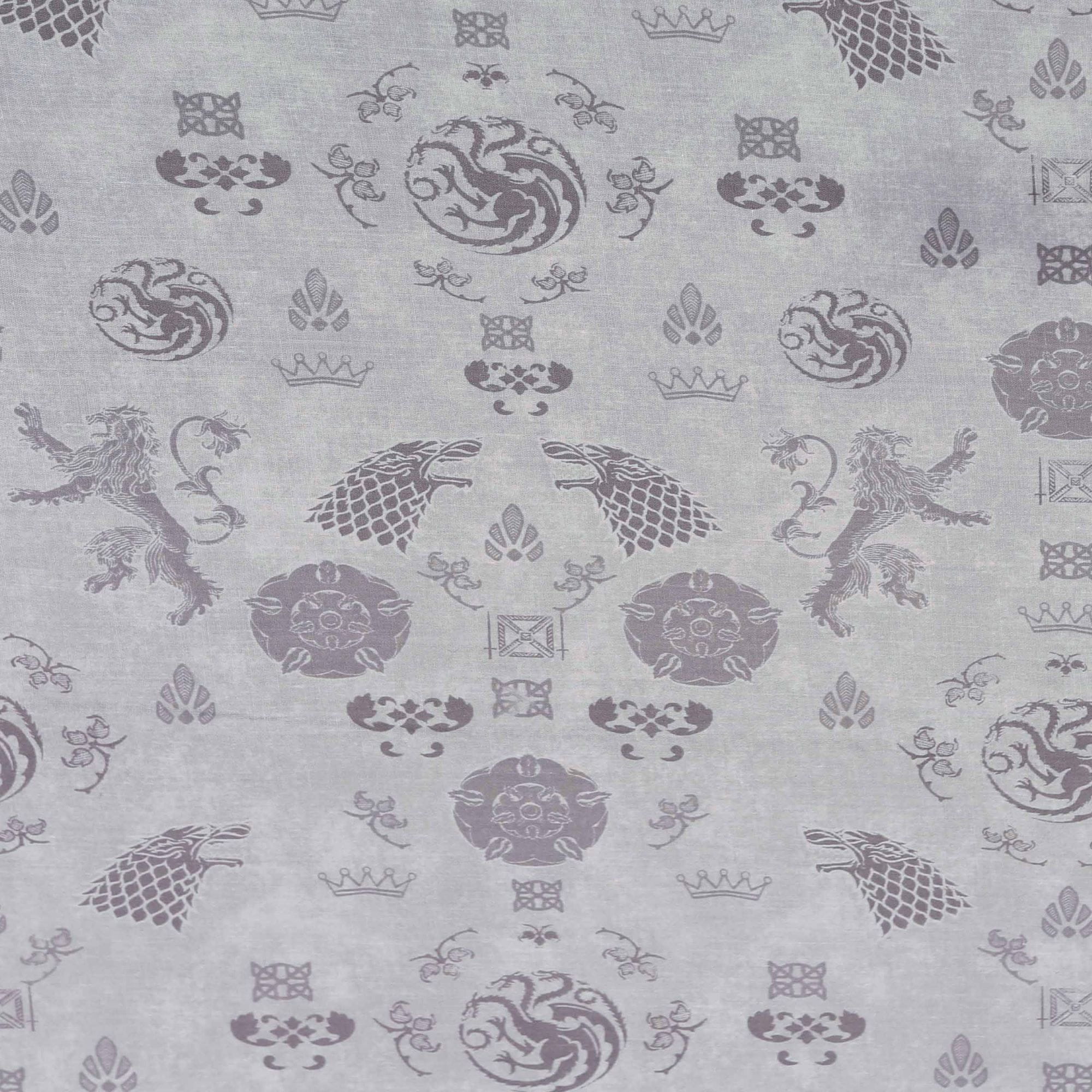 Siv, obojestranski komplet posteljnine s ponavljajočimi se simboli iz filma „Igra prestolov“.Komplet vsebuje dve prevleki za vzglavnik na preklop in prevleko za odejo, ki se zapenja na gumbe.Komplet je izdelan skrbno, svetle in umirjene barve pa se prilegajo mnogim notranjim prostorom.Ima certifikat OEKO-TEX STANDARD 100, kar zagotavlja, da ne vsebuje škodljivih snovi.Komplet vsebuje:2× prevleka za vzglavnik – 74 cm x 48 cm,1× prevleka za odejo – 200 cm x 200 cm