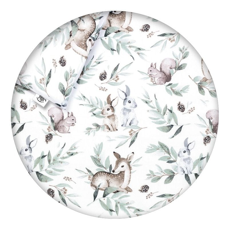 Posteljni set za otroško posteljico je bil sešit iz 100 % bombaža, ki ima antialergijske in antibakterijske lastnosti. Tkanina ni alergena, zagotavlja toploto in omogoča dihanje kože, s čimer preprečuje njeno pregrevanje. Vzglavnik in prevleka za odejo se zapenjata zvarnimiskritimizadrgami.