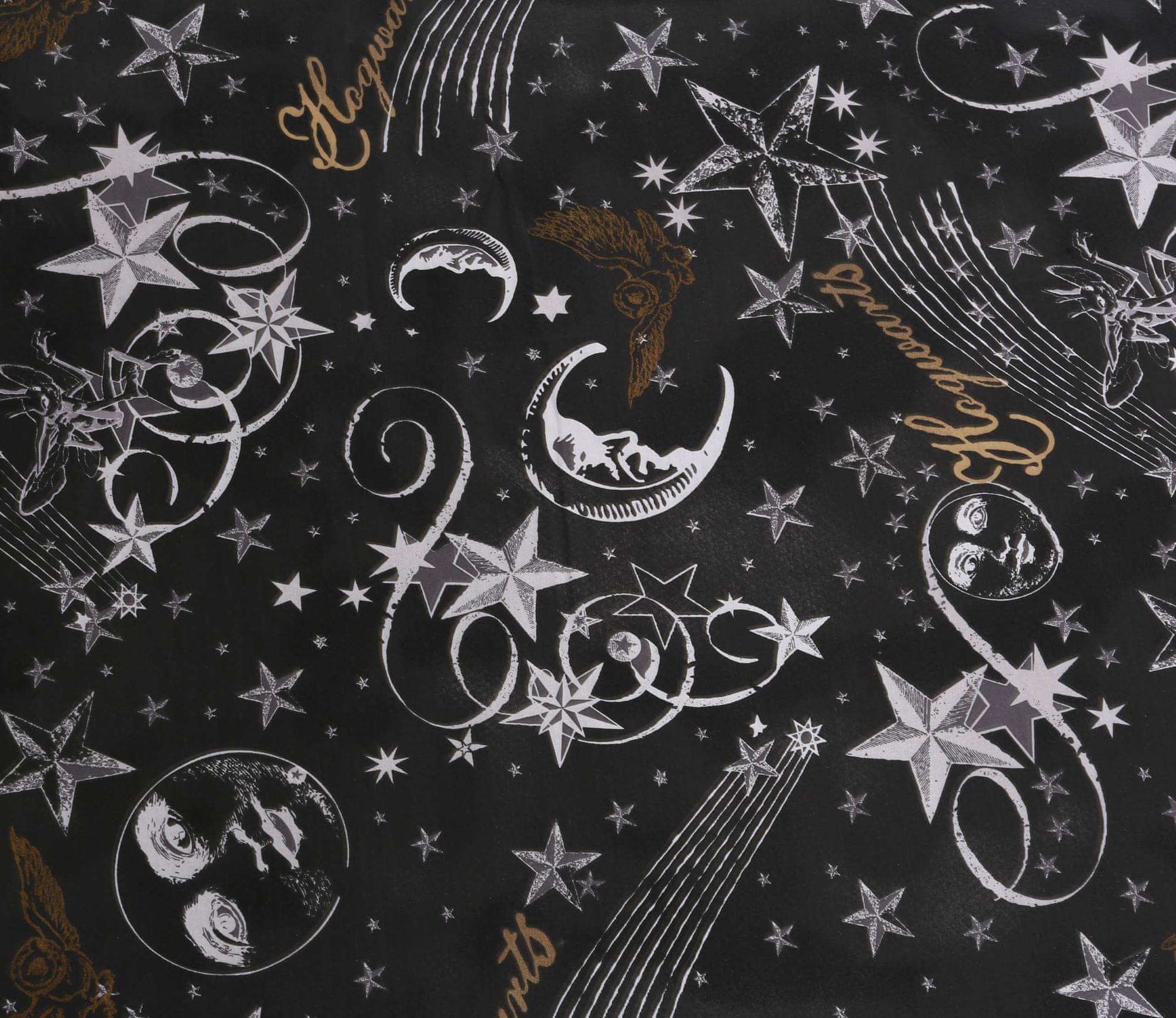 Dvostranski komplet posteljnine Harry Potter, s zvezdami in lunami. Komplet vsebuje prevleko za odejo in eno prevleko za vzglavnik. Celoten komplet je izdelan iz mehkega, prijetnega materiala na dotik. Prevleka za odejo se zapenja na gumbe, prevleka za vzglavnik na preklop. Ima certifikat OEKO-TEX S Celoten opis