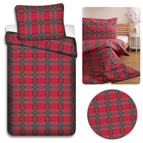 Bombažna posteljnina z rdečim karo vzorcem se popolnoma prilega zimskemu božičnemu vzdušju. Posteljnina je dimenzij 140 cm x 200 cm, kar je idealno za enojno posteljo, medtem ko ima prevleka za vzglavnik dimenzije 70 × 90 cm, kar popolnoma ustreza standardnim blazinam.