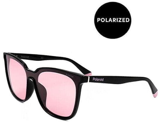 Sončna očala z značilno kvadratno obliko. Sijajni črni plastični okvir z modernim dizajnom. Celoten opis