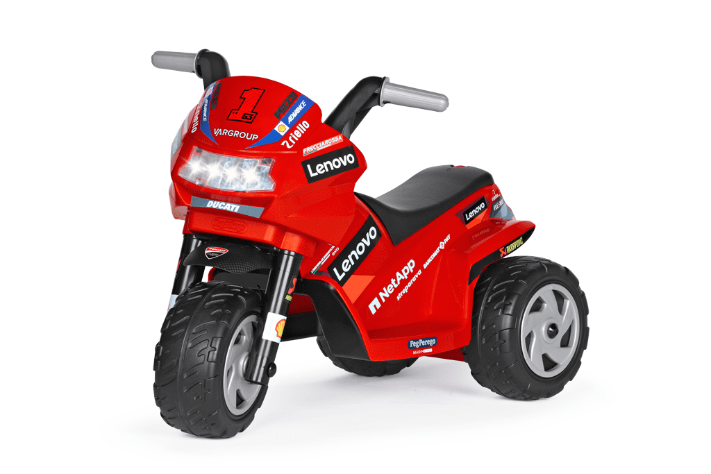 Peg Perego Mini Ducati EVO otroški motor, rdeč, je majhen, zato omogoča tudi igro v stanovanju. Celoten opis