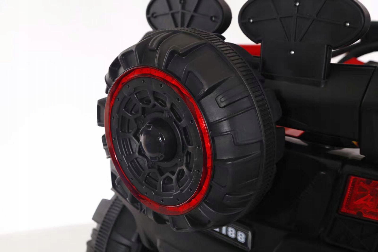 Baterijski Jeep 4×4 Buggy – usnje NA VOLJO V BARVI — RDEČA POPOLNOMA ZA DARILO!!! DVE MOŽNOSTI UPRAVLJANJA AVTOMOBILA: 1. Vključuje DALJINSKI UPRAVLJALNIK za starše 2. Otrok lahko samostojno vozi vozilo ENOSTAVNA UPORABA – za zagon preprosto pritisnite pedal za plin. Ko ga otrok spusti, se bo vozilo samostojno ustavilo. Volan, tako kot v pravem avtomobilu. Izjemno udobna vožnja – tiha kolesa Zagotovljena gladka in stabilna vožnja. 12V/7Ah baterija Glasbena plošča z USB vhodom in regulacijo glasnosti Hupa Štirje motorji s skupno močjo do 120 W (4 × 30 W) Varnostni pasovi SPECIFIKACIJA: motor: 4 × 30 W baterija 12 V / 7Ah 3 hitrosti vožnje, spreminjanje hitrosti se izvede z daljinskim upravljalnikom 2 ročni hitrosti vožnje počasen zagon – avto se pri speljevanju ne sunkovito ziba funkcija zibanja/guganja samodejna električna zavora – otrok mora le umakniti nogo s pedala za plin in avto se samodejno ustavi varnostni pasovi LED luči sprednja odpirajoča se vrata z zaklepanjem stranska ogledala moderna plošča z melodijami, zgodbami, hupo in zvokom motorja USB, AUX, SD vhod, regulacija glasnosti glasbe na plošči indikator napolnjenosti baterije Parametri: Dolžina: 120 cm Širina: 80 cm Višina: 76 cm Dodatni parametri: teža: 29 kg obremenitev: 40 kg hitrost: 3–6 km/h čas polnjenja: 8 do 12 ur Funkcije daljinskega upravljalnika: vožnja naprej/nazaj, zavijanje desno/levo, nadzor hitrosti, funkcija STOP (takojšnji (stop) Igrača ni primerna za otroke, mlajše od 3 let.