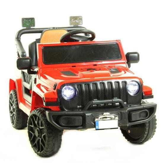 – motor: 4 × 35 W – akumulatorska baterija 2 × 6 V / 4 Ah – tri hitrosti vožnje, hitrost se spreminja z daljinskim upravljalnikom – dve ročni hitrosti vožnje – plastična kolesa, ojačana z opornico – mehak sedež iz eko usnja – počasen zagon – avtomobil ob zagonu ne trzne – funkcija zibanja/ugibanja – zaradi katere se avtomobil ziblje naprej in nazaj – električna zavora – dovolj je, električna zavora – vse, kar mora vaš otrok storiti, je, da umakne nogo s stopalke za plin, in avtomobil se bo samodejno ustavil – amortizerji – varnostni pasovi – žarometi LED – odpiranje vrat z napravo za zaklepanje – stranska ogledala – sodobna plošča z glasbo, zgodbami, sireno in glasom motorja – vhod USB, AUX, upravljanje glasnosti glasbe na plošči – indikator napolnjenosti baterije – vzmeti spredaj/zadaj.