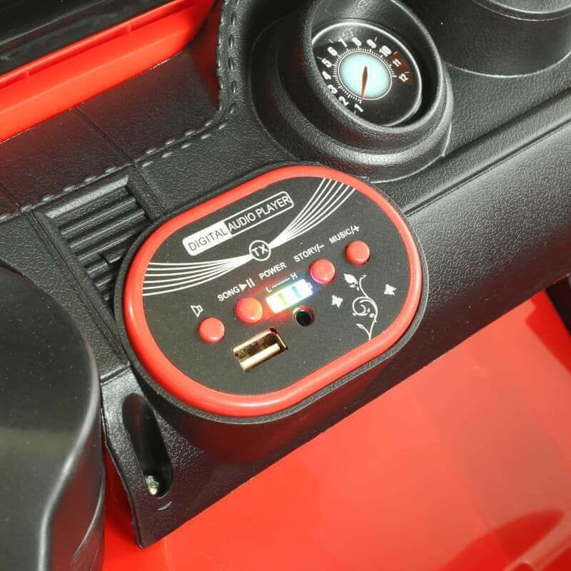 Vsem mladim ljubiteljem štirih koles priporočamo ta udoben baterijski model avtomobila. 4 × 35W motorji, udobna notranjost, daljinski upravljalnik brez hrupa, mehki sedeži, prevlečeni z eko usnjem, varnostni pasovi, sistem vzmetenja z vzmetmi so le nekateri od bogate opreme avtomobila. Bogata glasbena plošča z USB-vhodom, uravnavanjem glasnosti bo poskrbela za veliko dodatnega navdušenja med igro.