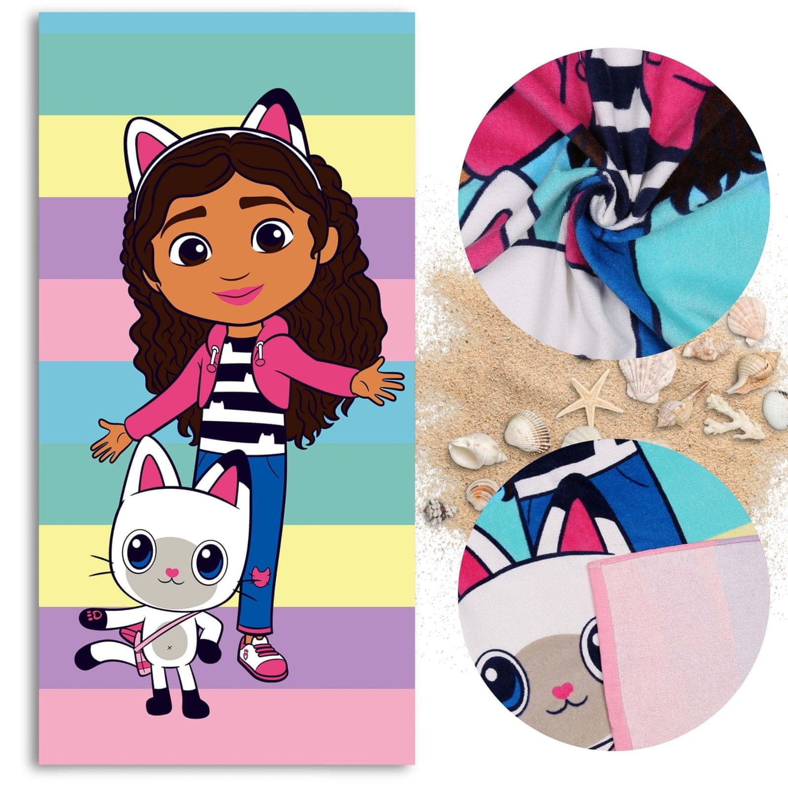 DreamWorks Gabby’s Dollhouse Barvna, HITRO SUŠILNI plažna brisača, kopalna brisača za otroke BOMBAŽ 70x140 cm OEKO-TEX