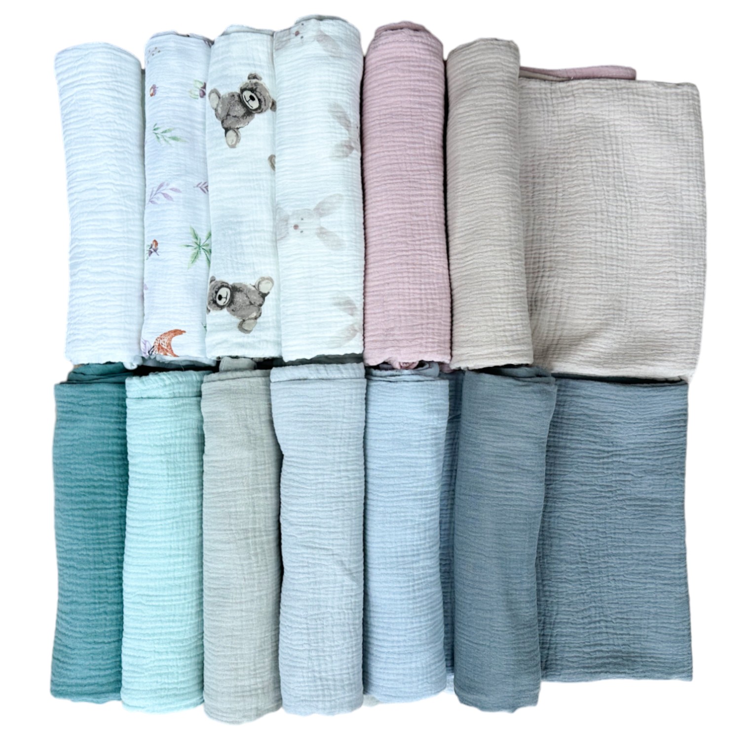 Bombažna muslina je material, ki ga boste vzljubili na prvi dotik, saj spominja na lahko in neverjetno mehko meglico. Muslin zagotavlja svoje edinstvene lastnosti zaradi posebnega prepleta vlaken. Je mehak in puhast na dotik , hkrati pa izjemno zračen in vpojen
