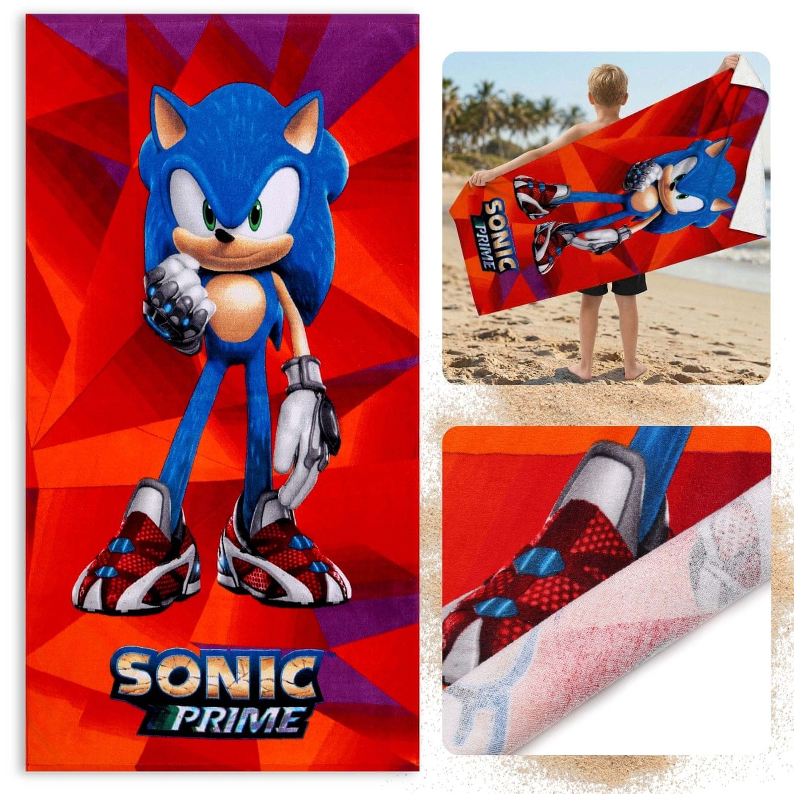 Licenčna brisača s podobo Sonic je idealna izbira za ljubitelje hitrih pustolovščin in priljubljene serije „Sonic Prime“ ter je kot nalašč za vsakodnevne rituale in počitniška potovanja.