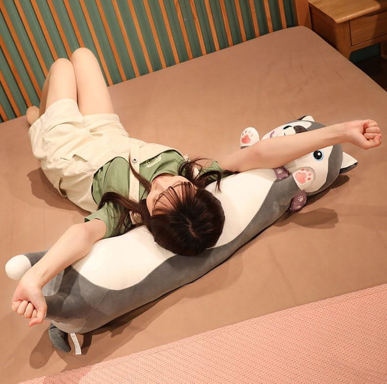 Plišasti podporni valj in blazina 70 cm kuža siv je čudovit dodatek, ki bo zagotovo pritegnil pozornost in dodal udobje vaši notranjosti. Ta prikupna blazina v obliki kuža, s prijetnim sivim plišem, je zasnovana za zagotavljanje optimalne podpore in udobja, hkrati pa služi tudi kot dekorativni element.