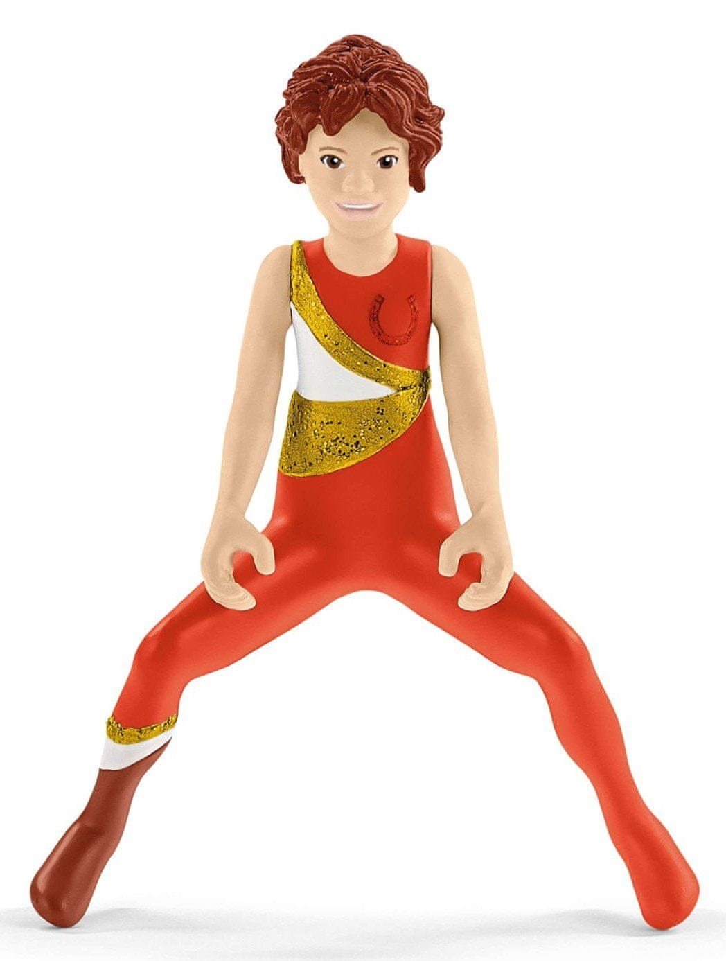 Kdo bo zmagal na velikem tekmovanju? Figurice in dodatki Horse Cluba so dodelani do zadnje podrobnosti in vam bodo približali življenje v hlevu in njegovi okolici. Raziščite svet konjereje, zbirajte figurice in si priskrbite lasten jahalni hlev. Paket vsebuje: 1× Mia deklica s premičnimi rokami, 1× Tom trener s premičnimi okončinami, 1× turnirski konj, 1× maček, 1× sedlo, 1× uzda, 2× martinček, 1× vrv, 1× bič, 1× odeja, 1× držalo za odejo, 1× pokal, 1× košara, 4× ograda Deklica Mia se lahko odlično pripravi na svoje prvo tekmovanje s kompletom za skoke. Inštruktor jahanja Tom pomiri konja in nežno zamahne z bičem, ki ga drži v roki, da konj enakomerno teče v krogu znotraj ograde, ki jo je mogoče sestaviti po potrebi. Mia, Hannahina sestra, ima gibljive roke in lahko drži velik zlat pokal. Sedlo, uzdo in odejo je mogoče po treningu sneti in shraniti na klop za shranjevanje. Rjava mačica z zanimanjem opazuje dogajanje, nato pa se zateče v svojo udobno košaro. Schleichove figurice so realistične in podrobne, saj se oblikovalci osredotočajo na filozofijo telesa, mišično strukturo in splošni izraz figure. Otroci se lahko igrajo z živalmi z vsega sveta, prazgodovinskimi dinozavri, filmskimi in pravljičnimi liki, ki so zveste replike svojih modelov, ter čarobnimi škrati in vilami iz čarobnega sveta Bayala. Primerno za otroke, stare 5 let in več.
