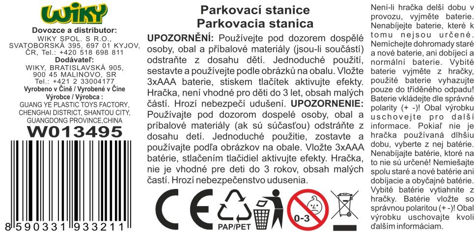 Sestavite svojo parkirno postajo z garažo. Dimenzije 36,5 × 21,5 × 46,5 cm. Vključuje 4 avtomobile (prosta kolesa), avtopralnico, bencinsko črpalko, servis in električno dvigalo. Baterije 3×AAA niso vključene. Priporočena starost: 3+