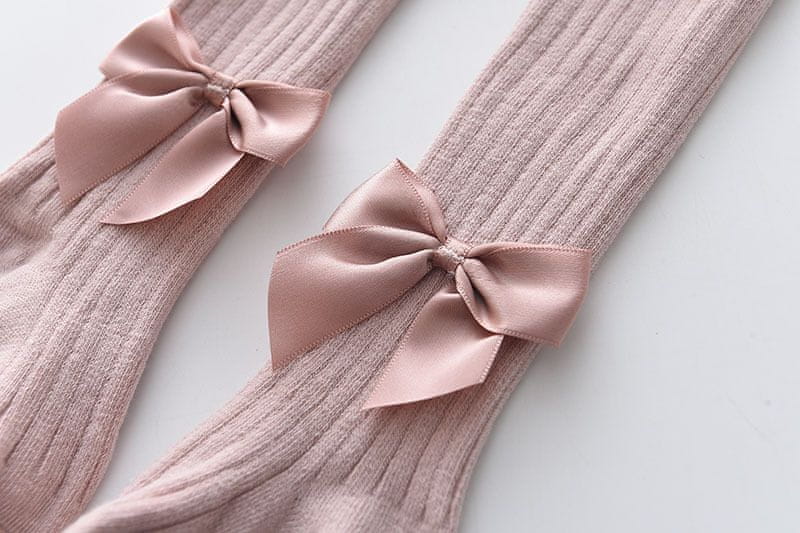 Bledo roza rebraste otroške hlačne nogavice z pentljami 6–8 L Celoten opis