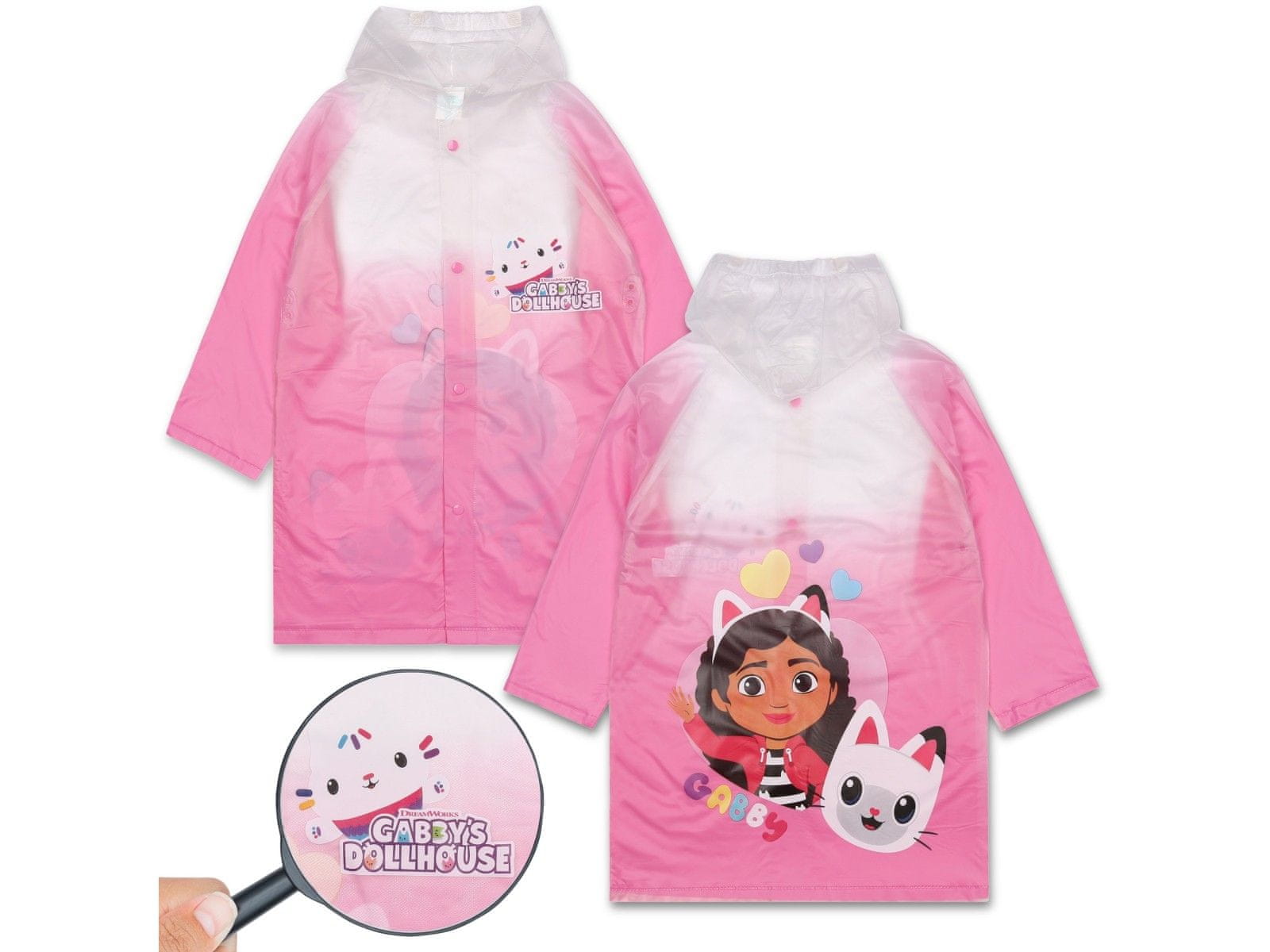 DreamWorks Gabby's Dollhouse Roza in bela dežni plašč s kapuco za deklice, pelerina za deklice 4-5 lat 104-110 cm