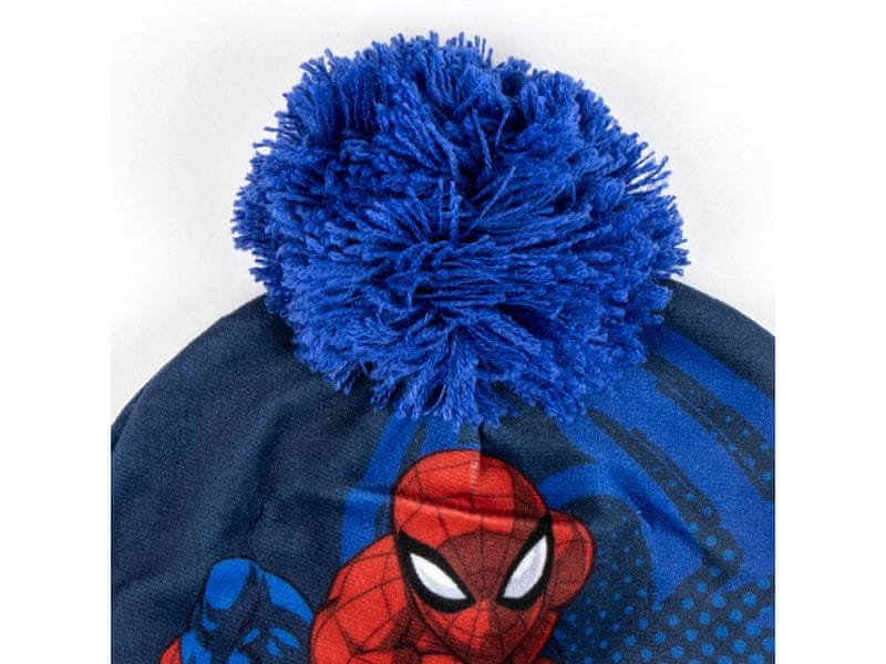 Kapa ima mehak zgornji del s potiskom Spider-Mana in pleten spodnji rob z barvitimi črtami. Pompom na vrhu daje kapi vesel zimski značaj, hkrati pa pomaga ohranjati toploto.