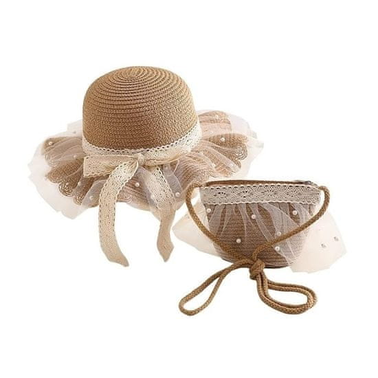 Flamenco Mystique Dječja slamnata šešir i torbica s biserima, tila, 52 cm