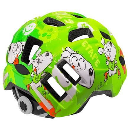 Otroška čelada Etape Kitty 2.0 je primerna za mlade kolesarje, deskarje ali rolkarje. Sodobna čelada Etape Kitty 2.0 je izdelana s tehnologijo In-Mold, zaradi katere je čelada lahka in zelo vzdržljiva. Poleg tega otroška čelada Kitty ponuja 14 zračnih odprtin za dobro prezračevanje, integriran sprednji vizir, mrežico proti mrčesu spredaj, odsevne varnostne elemente in sistem EFS (Easy Fit System), ki omogoča gladko in natančno prilagajanje velikosti čelade glede na obseg glave. XS/S 48–52 cm S/M 52–56 cm – In-mold tehnologija – sodobna tehnologija izdelave, pri kateri je zgornji del skeleta oblikovan neposredno na polistirensko lupino – 14 prezračevalnih odprtin – mreža proti žuželkam – integriran sprednji vizir – odsevni varnostni elementi – sistem za prilagajanje EFS