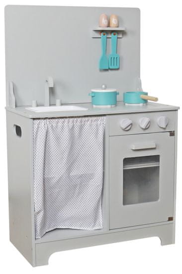Aga4Kids Lesena kuhinja Mini Chef s pečico in turkizno posodo Siva