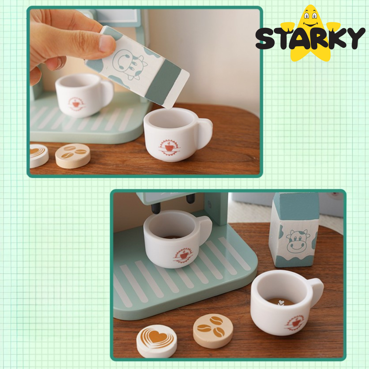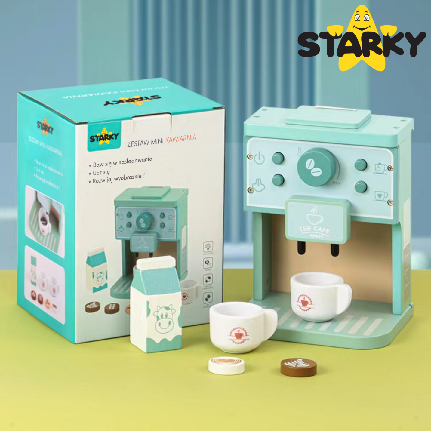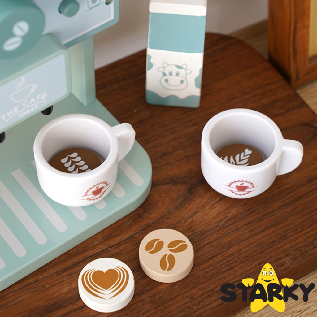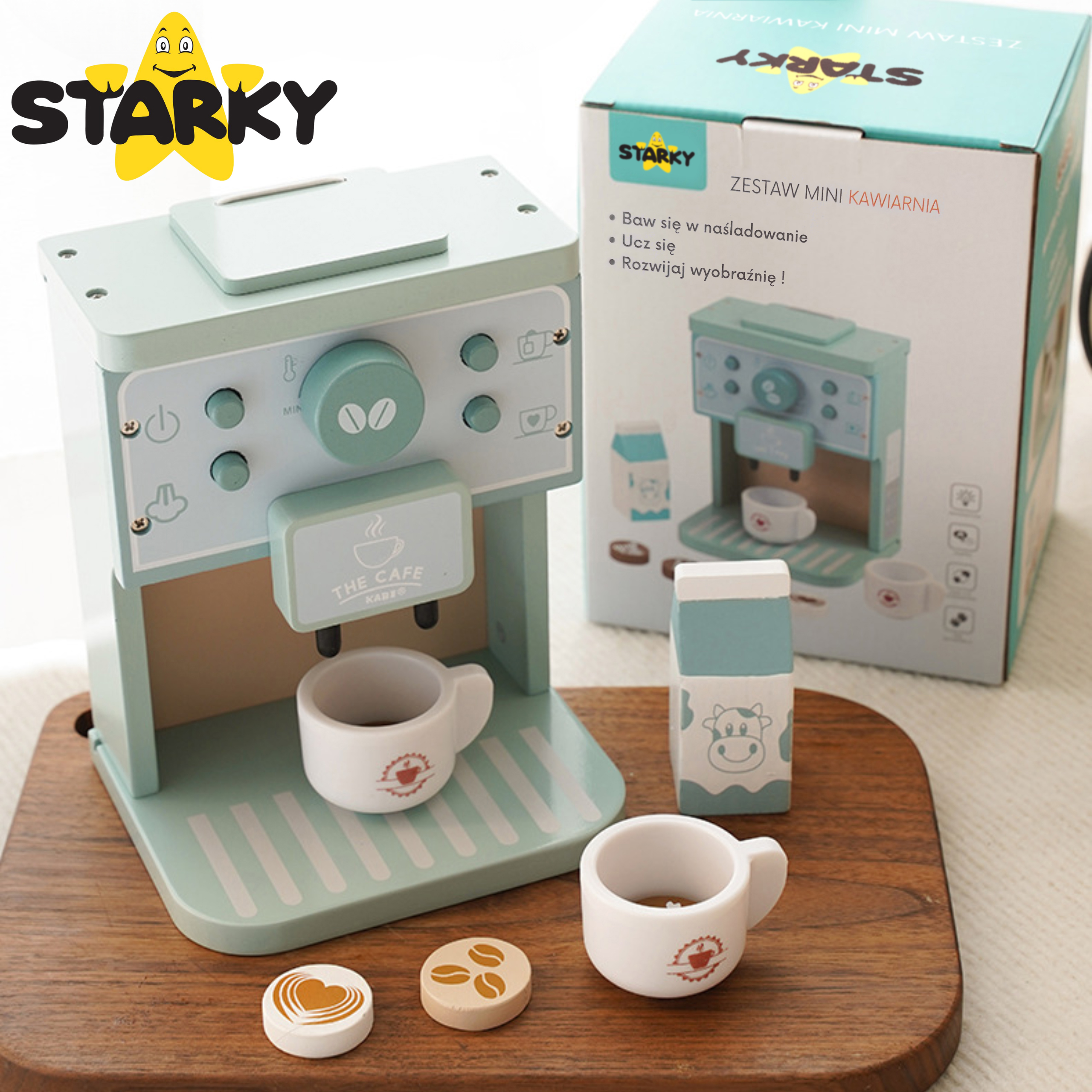 ☑️ Ali si vaš otrok želi postati barista? Ta lesen aparat za kavo je uresničitev sanj za male ljubitelje kave ! Eleganten, varen in v pastelnih barvah – se odlično poda v vsako otroško kuhinjo. Ima premični gumb , ki ob vrtenju oddaja zadovoljiv zvok „klik“.