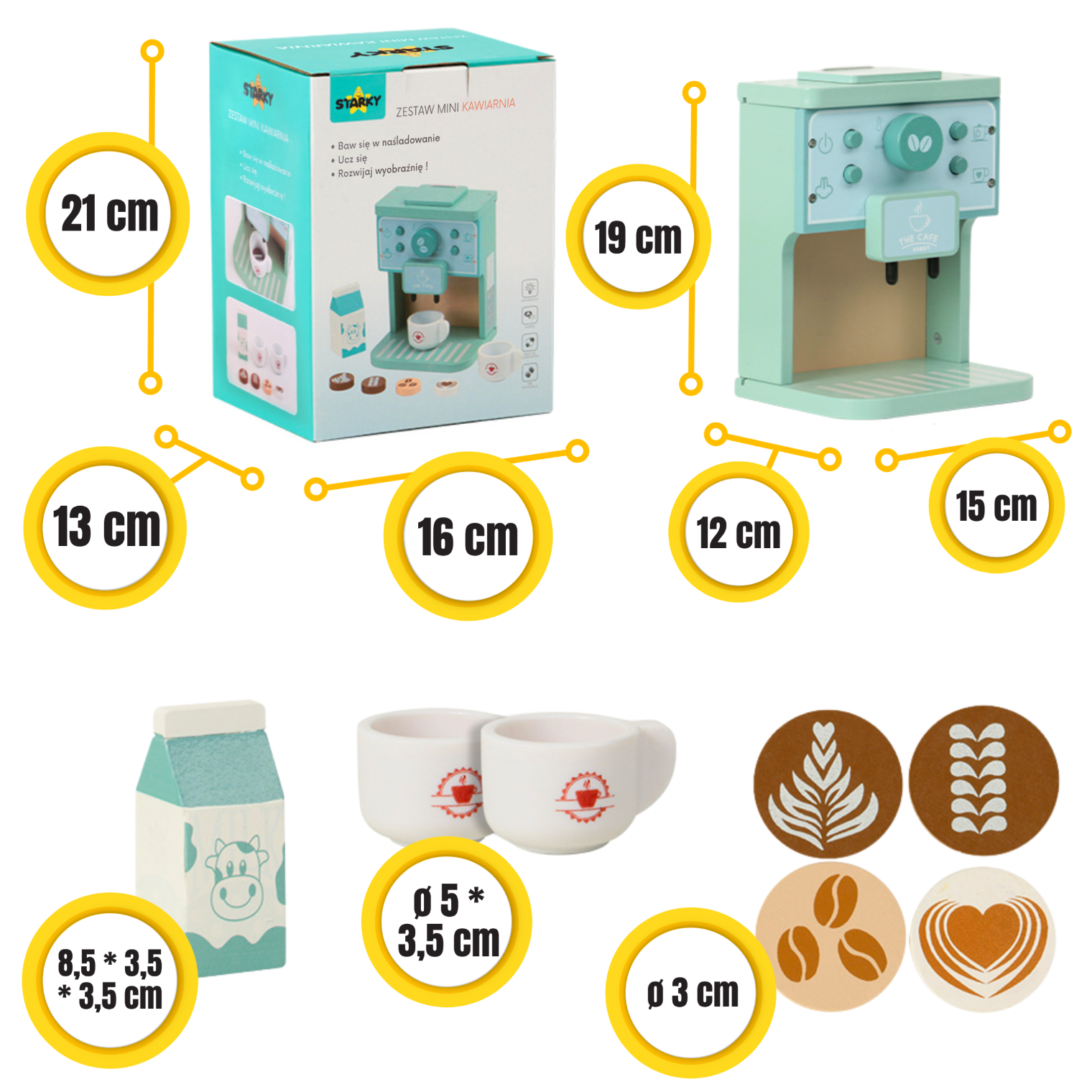 ☑️ Iščete popolno darilo za otroka? Ta kavni aparat je hit! Elegantna embalaža, trdna konstrukcija in podrobnosti, zaradi katerih ga bodo otroci vzljubili. Popoln za rojstne dneve, praznike, dan otroka ali kot presenečenje za vsako priložnost . Ni le igrača, temveč tudi dekorativni element, ki bo dodal čar vsaki otroški kuhinji. Pastelne barve, realistične funkcije in veliko zabave zagotovljeno. Podarite svojemu malemu baristu igračo, ki bo spodbudila njegovo domišljijo in mu zagotovila ure ustvarjalne zabave! ⭐️ DIMENZIJE IN PODROBNOSTI