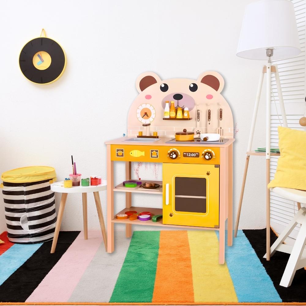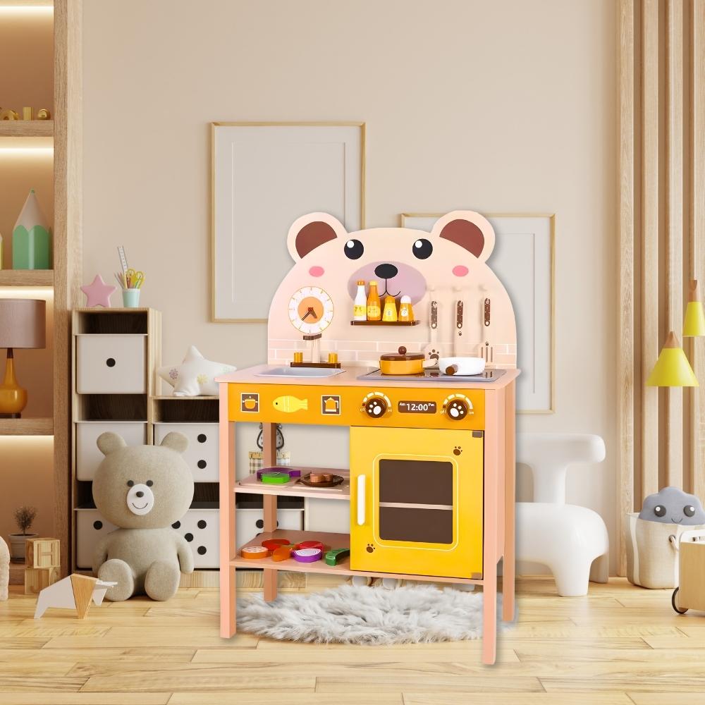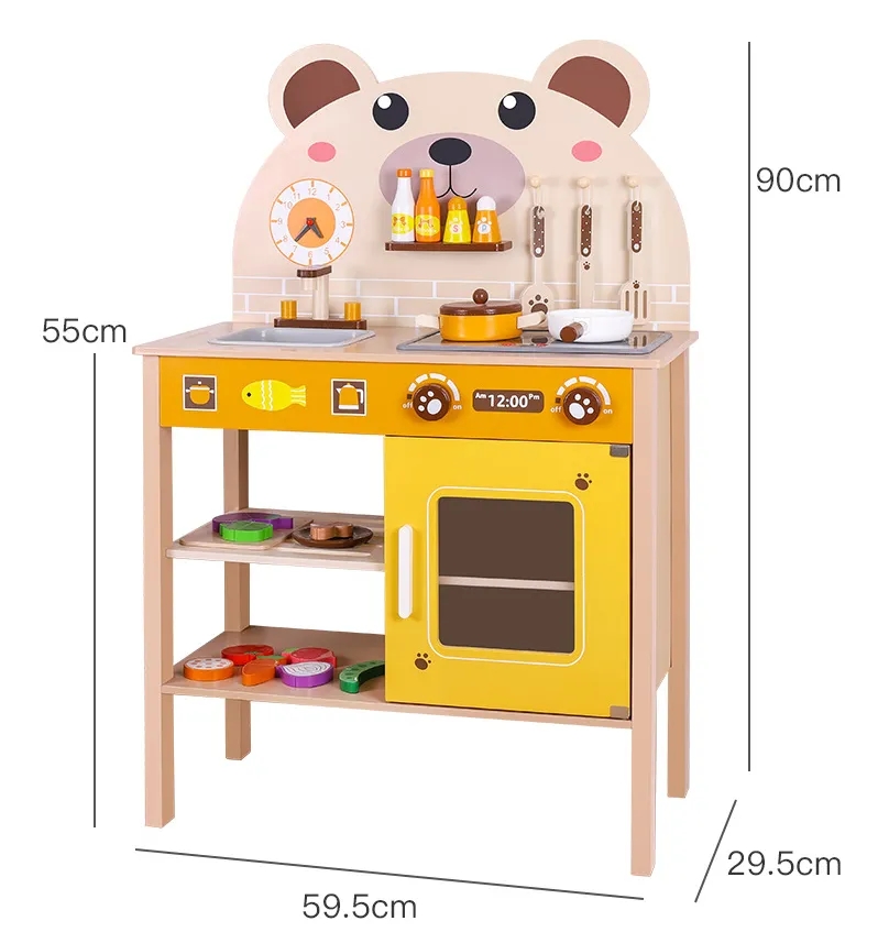 shumee Lesena kuhinja za otroke, dodatki za medvedek, pohištvo, igrače, komplet za kuhanje
