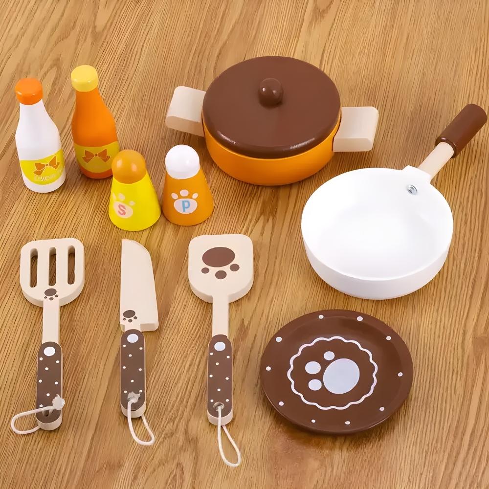 ⭐ Kuhinja je opremljena s pomivalnim koritom, indukcijsko kuhalno ploščo, pečico, policami in uro. Celoto dopolnjujejo številni kuhinjski dodatki . Mali navdušenci se naučijo pravilnega poimenovanja in upravljanja kuhinjskih aparatov.
