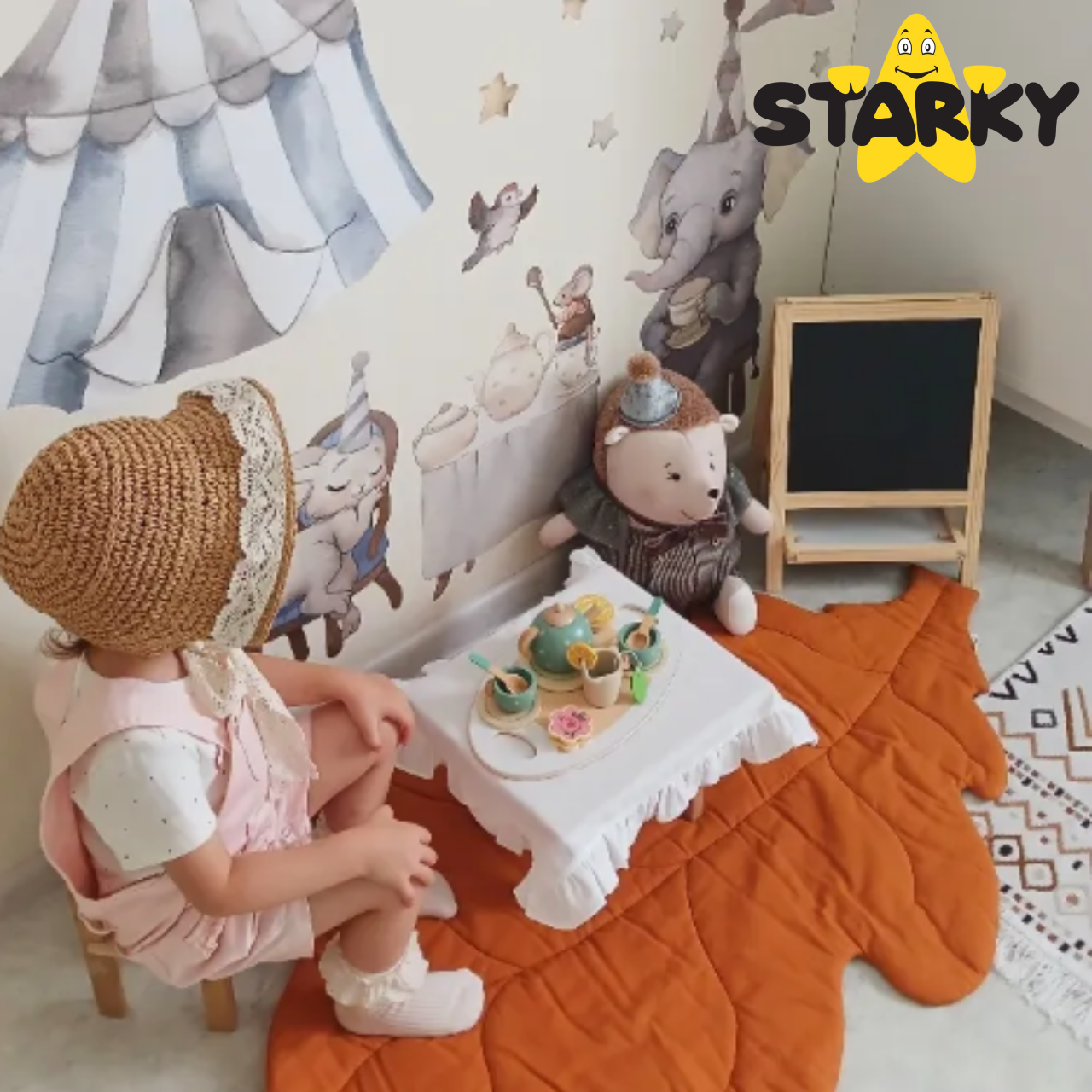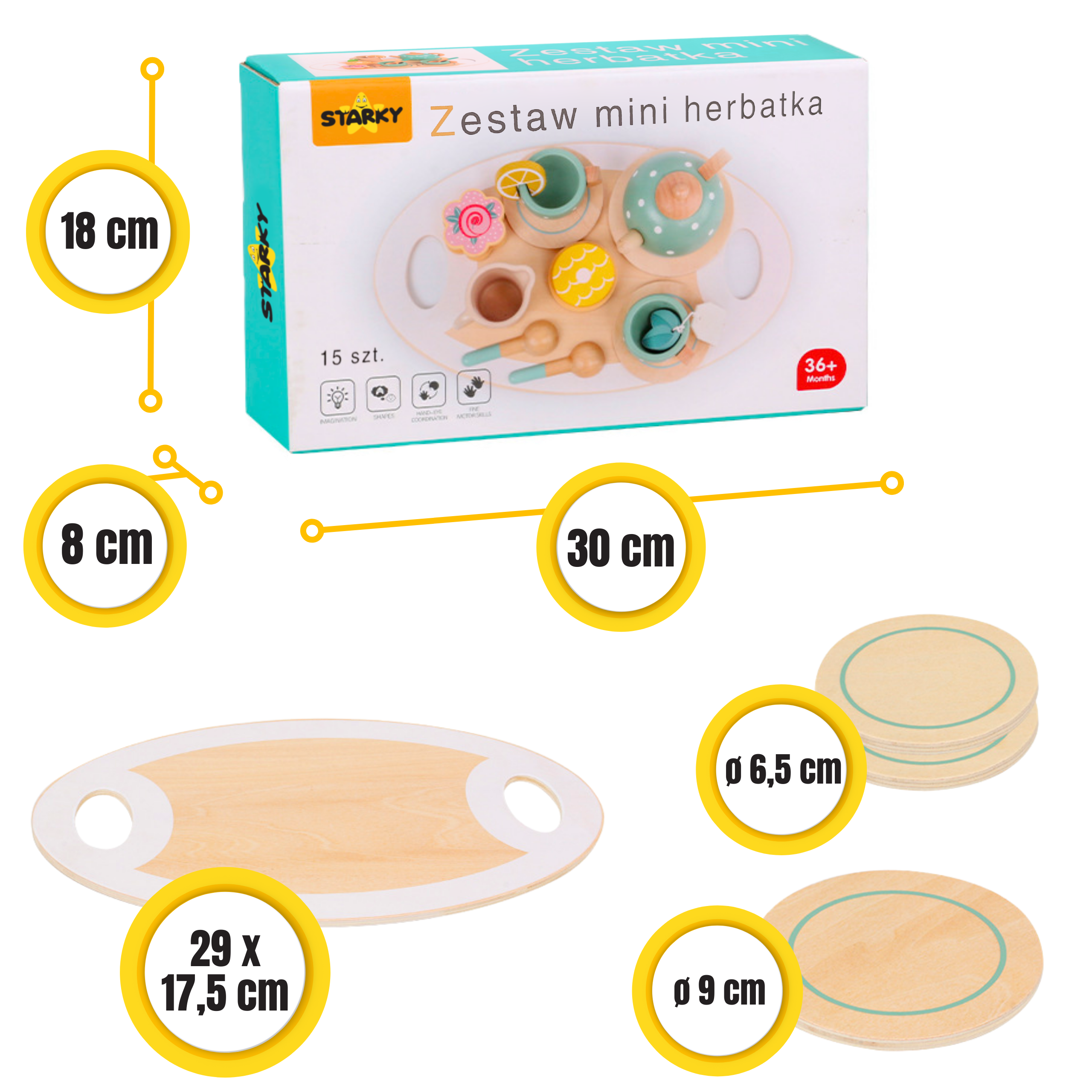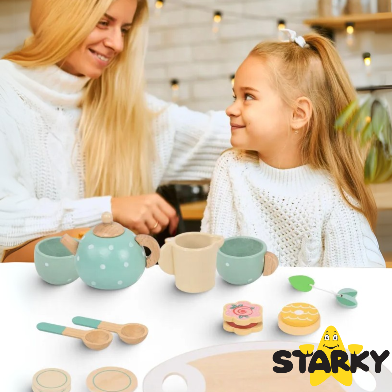 ☑️ Klasika, eleganca in ščepec šarma – to je leseni čajni servis STARKY! Ali je kaj bolj prijetnega kot popoldanski čaj z medvedki in punčkami? Ta bogat komplet je vse, kar potrebujete za organizacijo čarobne čajanke – za otroke, starše in goste plišaste igrače! Čudovite pastelne barve, solidna izdelava in obilo dodatkov bodo vsako zabavo naredili še bolj prijetno!