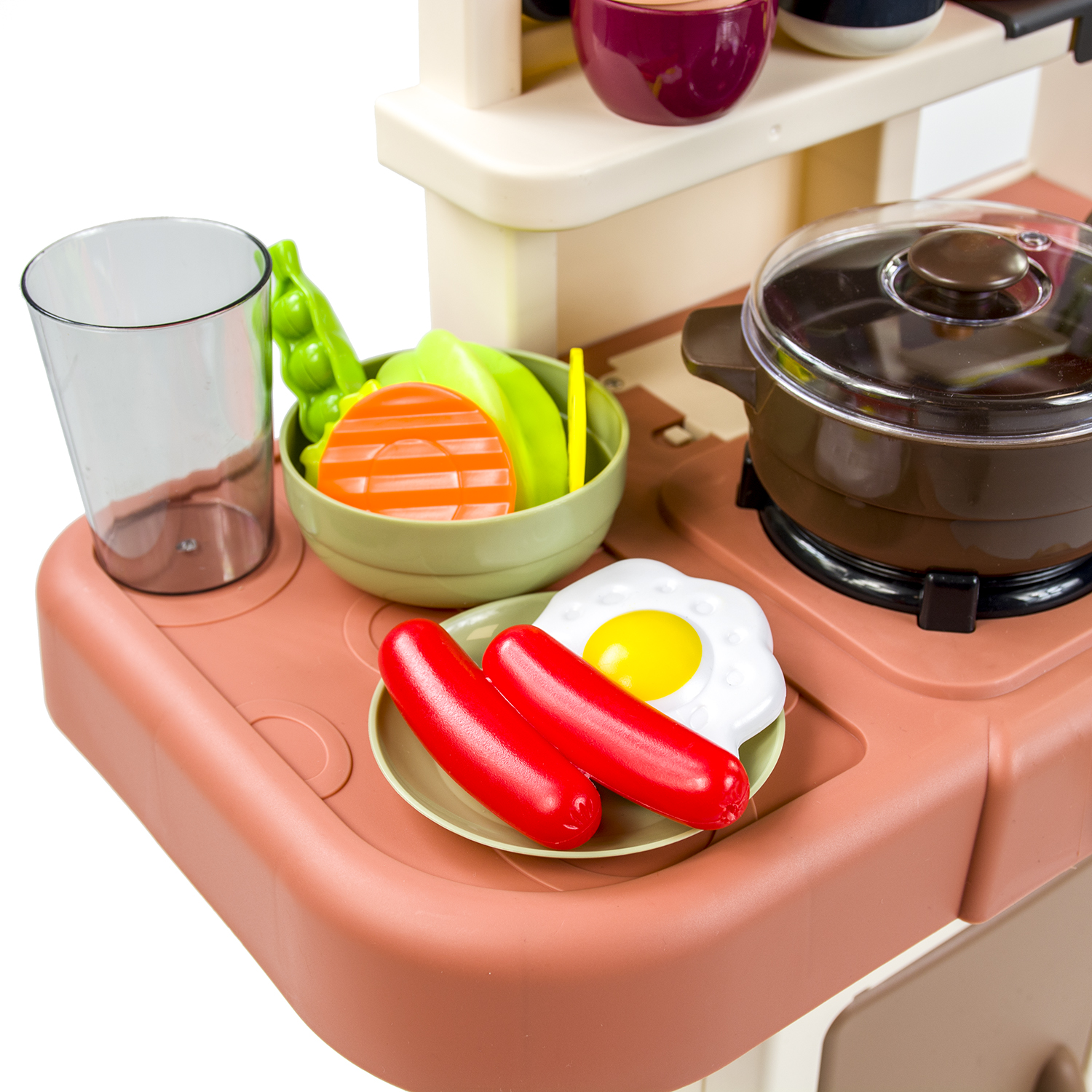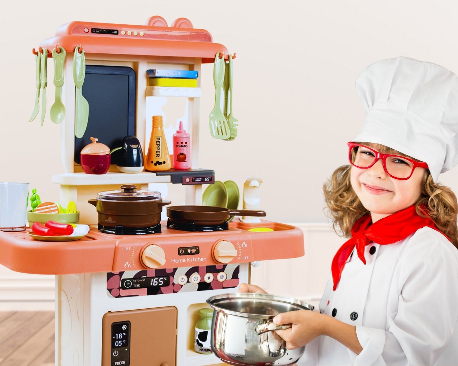 Med igranjem kuhanja otroci uporabljajo različne pripomočke, ki podpirajo razvoj fine motorike ter koordinacije rok in oči. Priprava obrokov ne postane le fascinantna igra, temveč tudi učinkovita vaja ročnih spretnosti.