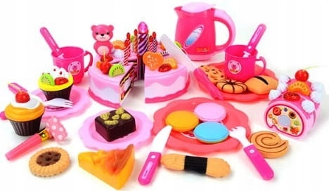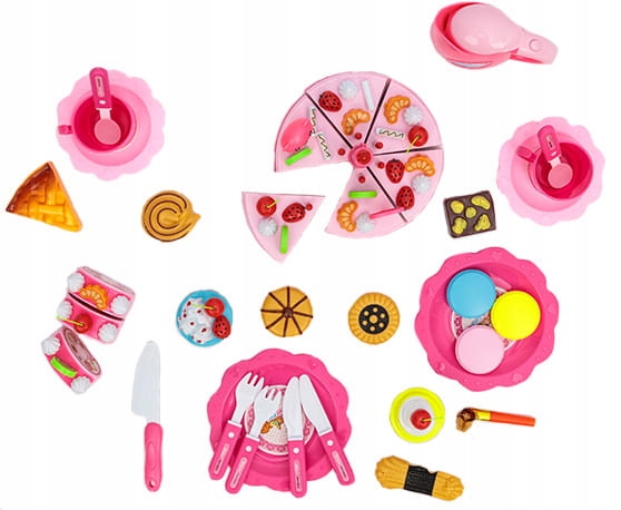 Vsi dodatki v tem kompletu so bili izdelani z največjo skrbnostjo , zaradi česar popolnoma posnemajo prave sladkarije in jedi . Igranje s takimi izdelki je še bolj zabavno in otroku omogoča, da se bolj vključi v vlogo. Torta in rolada imata, ko ju prerežete , resnično podobo biskvita, krem in sadja . Torta in druge sladkarije vsebujejo majhne luknjice, v katere vstavite majhne okraske, kot so meringue, sadje ali palčke za glazuro. Zahvaljujoč raznolikim dodatkom bo torta vsakič videti drugače. KOMPLET, VAREN ZA OTROKE Ta komplet sladkarij in posodic je popoln kot