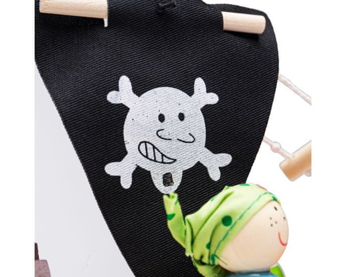 Pozdravljen, kapitan! Veseli mornarji bodo oboževali to leseno mini piratsko ladjo s kapitanom, dvema piratoma, ladjo, sidrom, skrinjo z zakladom in celo morskim psom! Vse igralne elemente lahko preprosto skrijete v ladjo in jih vzamete s seboj, kamorkoli greste. Vse je vključeno, kot je prikazano nasliki. Glavneznačilnosti: izdelan iz visokokakovostnih materialov, ki izvirajo iz odgovornih virov skladen z veljavnimi evropskimi varnostnimi standardi