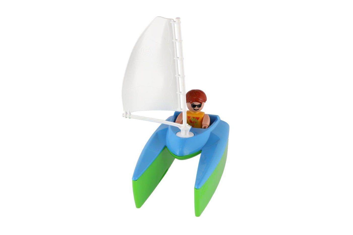 Čolni za zabavo otrok v kopeli in na prostem. Komplet sestavljata jadrnica in katamaran. Z dvema figurama v kul videzu surferja. Velikost čolna: 17 cm Primerno za otroke od 2. leta dalje