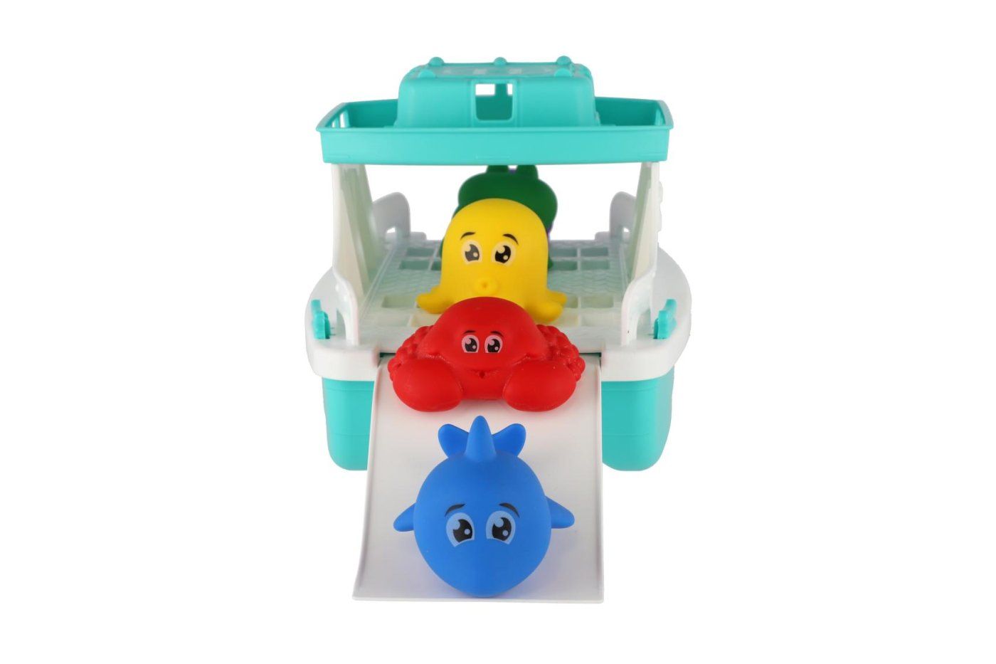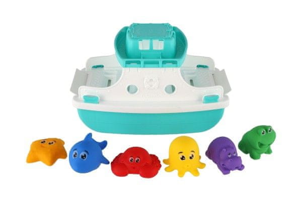 Veseli vodni čoln, poln pisanih živali. Ta trajekt iz trpežne plastike je idealen za kopalno zabavo v kopeli, bazenu in peskovniku. Otroci bodo navdušeni nad njegovo premikajočo se rampo ter prikupnimi morskimi živalmi z obrazi, ki jih lahko po svoji domišljiji vozijo, zlagajo in prekladajo. Zaradi nežnih barv, zaobljenih oblik in varne izdelave je igrača primerna tudi za manjše otroke. Spodbuja koordinacijo, motorične spretnosti in ustvarjalno igro – tako na morju kot v kopeli. Dimenzije izdelka 16 × 16 × 25 cm Primerno za otroke od 12. meseca dalje