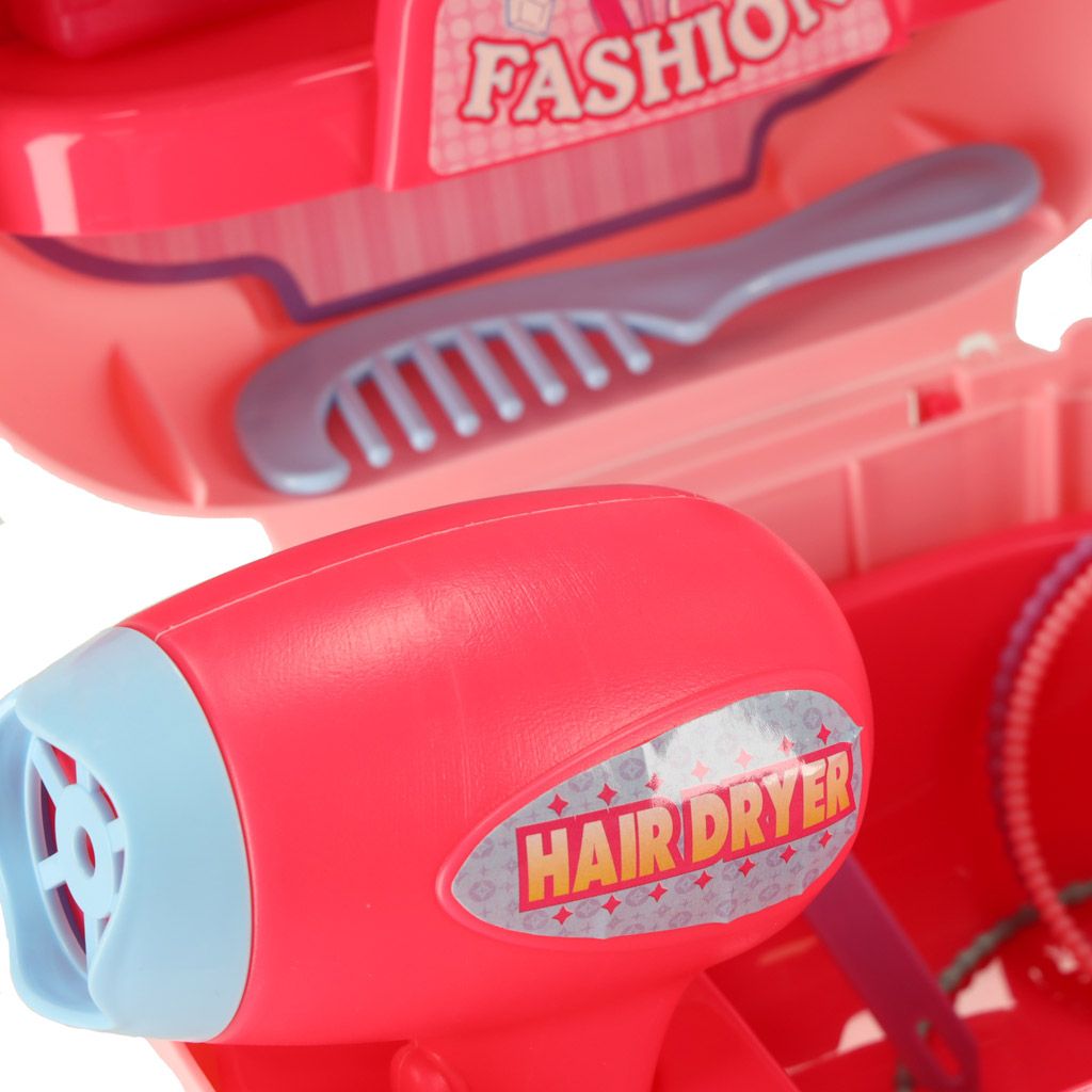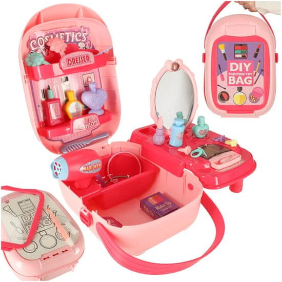 KOZMETIČNI SET V KOVČKU Kozmetični salon poln presenečenj v priročnem kovčku. Čudovit plastični kovček vsebuje različne zaklade, ki bodo razveselili vsako punčko ali bodočo frizerko. Sponke, zapestnice, sušilnik za lase in glavnik so nujna oprema vsakega profesionalnega kozmetičnega salona. Se vaša najljubša maskota ali punčka odpravlja na ples ali morda vaša najboljša prijateljica potrebuje obisk frizerja in kozmetičarke? Naredite jim čudovito pričesko in poskrbite, da bodo videti kar najbolje. In kar je najpomembneje, kovček je mogoče personalizirati! kako Preprosto je, na pokrovu kovčka je prozorno plastično okence, pod katerega lahko vstavite kos papirja z risbo ali napisom, ki ga ustvari otrok. Tako bo kovček popolnoma unikaten in enkraten. Naj vaš otrok preide v svet odraslih in opravi poklic, o katerem je vedno sanjal. Otroci radi posnemajo odrasle. Igranje te igre vam bo pomagalo razviti socialne veščine, ki jih boste potrebovali v odraslem življenju. Kozmetični set ni samo odlična zabava, ampak tudi oblika učenja in podpore pravilnemu razvoju. otrok. Odličen način ustvarjalne zabave, ki podpira razvoj otrokovih ročnih spretnosti in logičnega mišljenja. Veliko število dodatkov bo poskrbelo za obilico neskončne zabave. Kreativna igrača, s katero ni časa za dolgčas. In odlična ideja za unikatno darilo za punčko ali bodočo frizerko. Vsebina seta: Kovček Sušilnik Ogledalo Glavnik Manšetni gumbi Prstani Zapestnice Komplet nalepk Barvite stekleničke imitacije laka za nohte in parfuma Mere: Kovček: 32 cm x 19 cm x 12 cm Sušilnik: 13 cm x 10 cm Premer prstana: 1,5 cm Premer zapestnice: 7 cm Pakiranje: 32 cm x 19 cm x 12 cm Opomba: Set ne vsebuje dejanskih ko smetika
