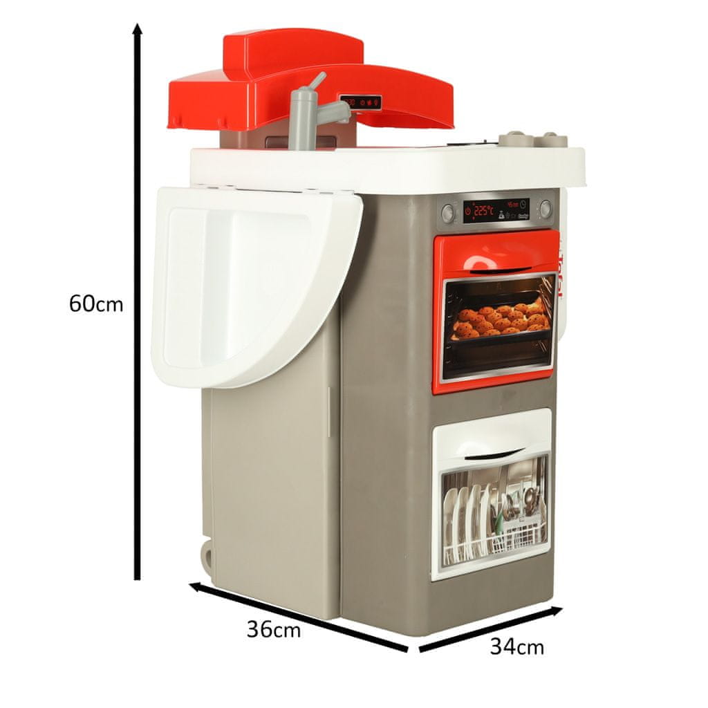 Smoby Kitchen Minitefal OpenCook Electronic Elektronska, zložljiva mini kuhinja Tefal OpenCook 312202 je popoln kuharski set. Kuhinja je modernega stila in barv. Komplet je sestavljen iz potrebne opreme in funkcij, ki omogočajo zabavno reprodukcijo dejavnosti, ki jih otroci opazujejo v vsakdanjem življenju in jih tako prostovoljno posnemajo. Dodatki so bili ustvarjeni za predšolske otroke, tako da zabava postane udobna in edinstvena avantura. Zabava v kuhinji daje otrokom občutek neodvisnosti, razvija njihovo domišljijo in ustvarjalnost ter daje priložnost za izgradnjo socialnih interakcij v skupini. Plastična kuhinja za otroke: Zagotovila bo veliko ur očarljive zabave! Sestavljen je iz pečice, pomivalnega stroja, aparata za kavo, gorilnikov, pipe in nape! Omogočil vam bo, da se zabavate skupaj z otrokom! & nbsp; Lastnosti in vsebina seta: Elektronska, zložljiva kuhinja z zvočnimi efekti; Zanimive, moderne barve: bela, siva & nbsp; rdeča ; Funkcionalen pult s prostorom za pripravo in serviranje jedi; Div> Sonk s pipo; Imitacija grelne plošče z zvokom kuhanja; Sušilnik za krožnike in jedilni pribor; Gumb za upravljanje peči z zvokom „CRIC CRAC“ za shranjevanje kapsul; , hladilnik, pomivalni stroj – z odpirajočimi se vrati; Police za dodatke; 22 dodatkov: 2 kosa, 2 krožnika, 2 vilici, 2 noža, 2 čajni žlički, 2 skodelici, 2 skodelici, 3 kapsule, 2 dodatka za kuhanje, 3 prehrambeni izdelki. Vsi dodatki so iz plastike in/ali kartona); vključuje kolesa za udoben transport; Po igri jo lahko shranite kamor koli, zahvaljujoč funkciji gradnje; & nbsp; Mere: Velikost kuhinjskega prtljažnika: OK. 65 × 36 × 93 cm Dimenzija kompleksne kuhinje: cca. nbsp; 60 cm> & nbsp; Tehnični parametri: Plastika: plastika/karton Starost: 3+ Število elementov: 23 & nbsp; ! Začnite kuhati skupaj! Velik set vam bo omogočil, da se boste počutili kot v pravi kuhinji in pripravljali okusne jedi! Izrazite barve in zanimiv dizajn pritegnejo pozornost ne le vsakega otroka, ampak tudi odraslega! & nbsp;