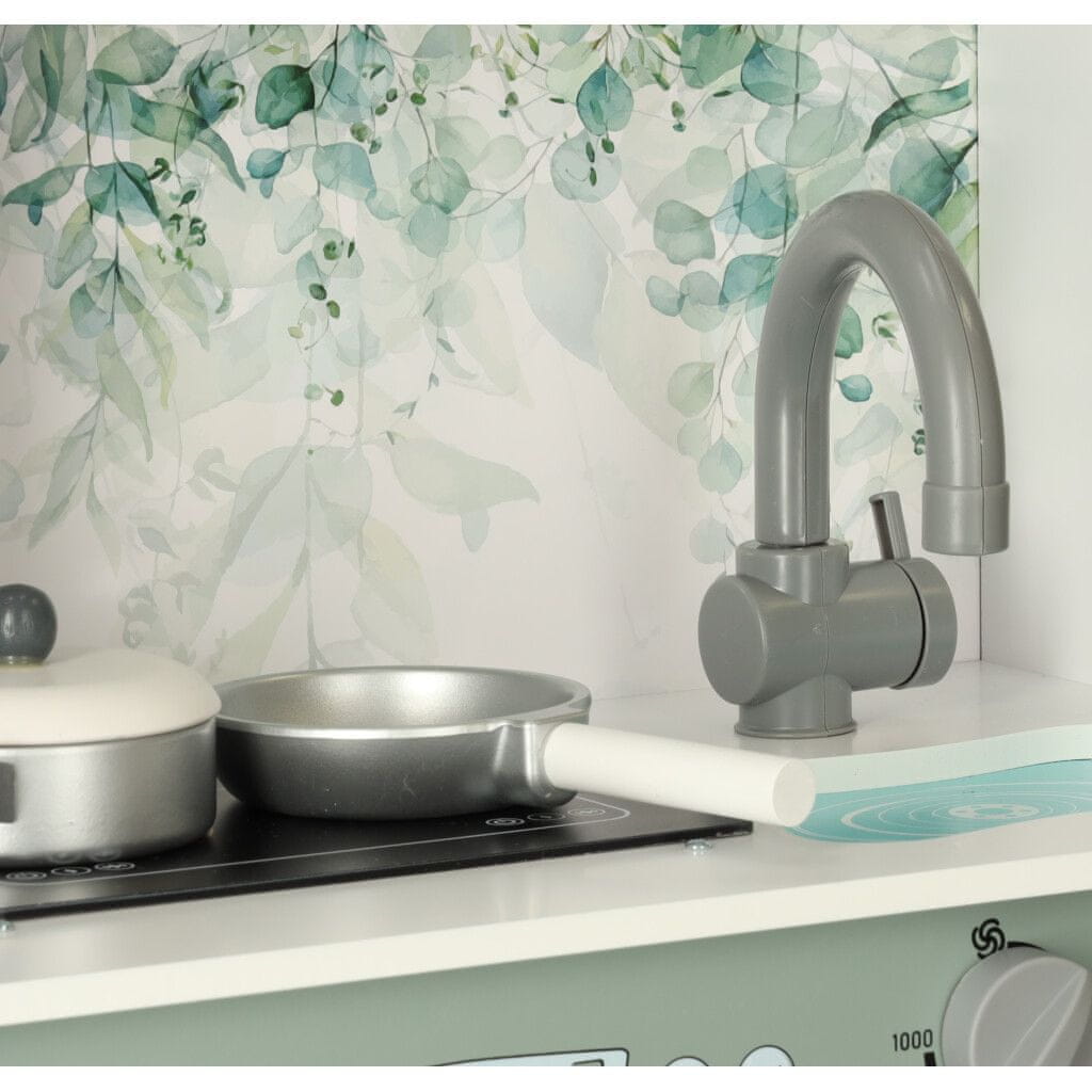 LESENA MDF KUHINJA LULILO SALIKO Z EXPRESSORJEM V svojem otroku prebudite strast do kuhanja! Že dolgo je znano, da otroci radi posnemajo svoje starše tudi pri manj prijetnih opravilih, kot sta pospravljanje ali kuhanje. Takšno modeliranje pomaga otrokom, da se počutijo del skupnosti, in jih nauči številnih dragocenih veščin ter kako pomembne so takšne dejavnosti v vsakdanjem življenju. Impresivna otroška kuhinja bo odlična igrača, s katero se bo vaš malček vsaj malo počutil kot pravi odrasel človek. Igranje v kuhinji je tudi odličen izgovor, da otroka navajate na gospodinjska opravila. Kuhinja se z zanimivim dizajnom in nežnimi barvami poda v vsako otroško sobo. Prav tako bo lep okras, ko ga nekaj časa ne boste uporabljali! Žive barve in veliko število mamljivih dodatkov bodo pritegnili pozornost vsakega otroka. Celoten komplet bo zagotovo ukradel srce vašega otroka in poskrbel za obilico neskončne zabave! Igranje s kuhinjo spodbuja domišljijo, spodbuja kreativno razmišljanje in razvija ročne spretnosti – navsezadnje priprava okusnih jedi ni vedno tako enostavna. Igra kuhanja je lahko tudi odličen način, da se naučite, kako ostati varen v kuhinji – otroku je vredno razložiti, da morate poskrbeti, da je gorilnik ugasnjen, ko končate s kuhanjem, ali pa ga naučite, kako upravljati mikrovalovno pečico z lažnimi gumbi. Kuhinja je bila izdelana skrbno in s pozornostjo do vsakega detajla. Tako boste uživali tako vi kot vaš otrok! Večina elementov je iz lesa. Vse skupaj je skrbno zbrušeno in pobarvano z nestrupeno barvo – vse za varnost vašega malčka. Lesene igrače so predlog za starše, ki poleg zabave svojih otrok skrbijo tudi za dobrobit našega planeta. Narejeni iz naravnih materialov, varni in trpežni bodo uspešno služili številnim generacijam otrok. Izdelek bo idealen kot darilo za vsakega otroka – ne bo le poskrbel za veliko ustvarjalne zabave, ampak bo tudi zadovoljil otrokovo potrebo po posnemanju staršev. Kuhinjske funkcije: ura mikrovalovna pečica aparat za kavo pralna pečica kuhalna plošča Vsebina seta: kuhinja za samosestavo 2 x plastična skodelica leseni lonec s pokrovom lesena ponev solnica lesena žlica Material: MDF plošča/plastični elementi Brez LED osvetlitve Mere: Kuhinja: 62 cm x 26 cm x 85 cm Višina delovne plošče od tal: 34 cm 59,5 cm x 26 cm Solnica (premer x višina): 3 cm x 6 cm Premer pekača: 10 cm Premer lonca: 9 cm Premer lonca: krožniki: 9,5 cm Dolžina žlice: 13 cm Skodelica (premer x višina): 5 cm x 5 cm Pakiranje: 82 cm x 48 cm x 12 cm Izdelek je pakiran v kartonski embalaži.