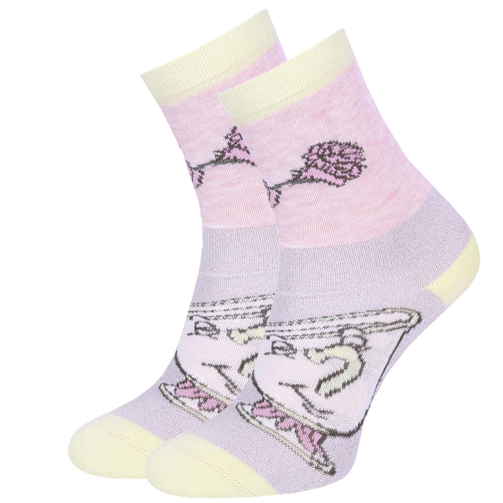 Komplet sestavljajo trije pari nogavic, okrašeni s pravljičnim motivom iz filma „Lepotica in zver“, na katerem je upodobljen prikupni čajanček Chip.