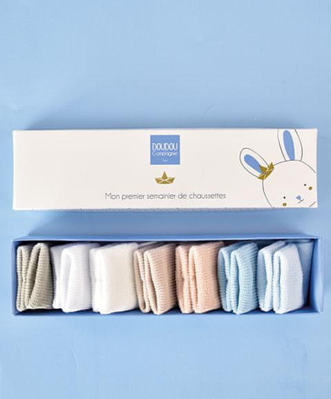 Čudovit paket nogavic v darilni škatli za novorojenčke je sestavljen iz sedmih parov nogavic. V barvah za dojenčka. Za vsak dan v tednu drugačne nogavice. Izvirno darilo za rojstvo otroka. Perite v kopeli pri 30°. Sušenje na naravni ali nizki temperaturi. Glavne značilnosti: sestava: 79 % bombaž, 18 % poliester, 3 % elastanustrezno darilo za rojstvo dojenčkamehko in trpežno.